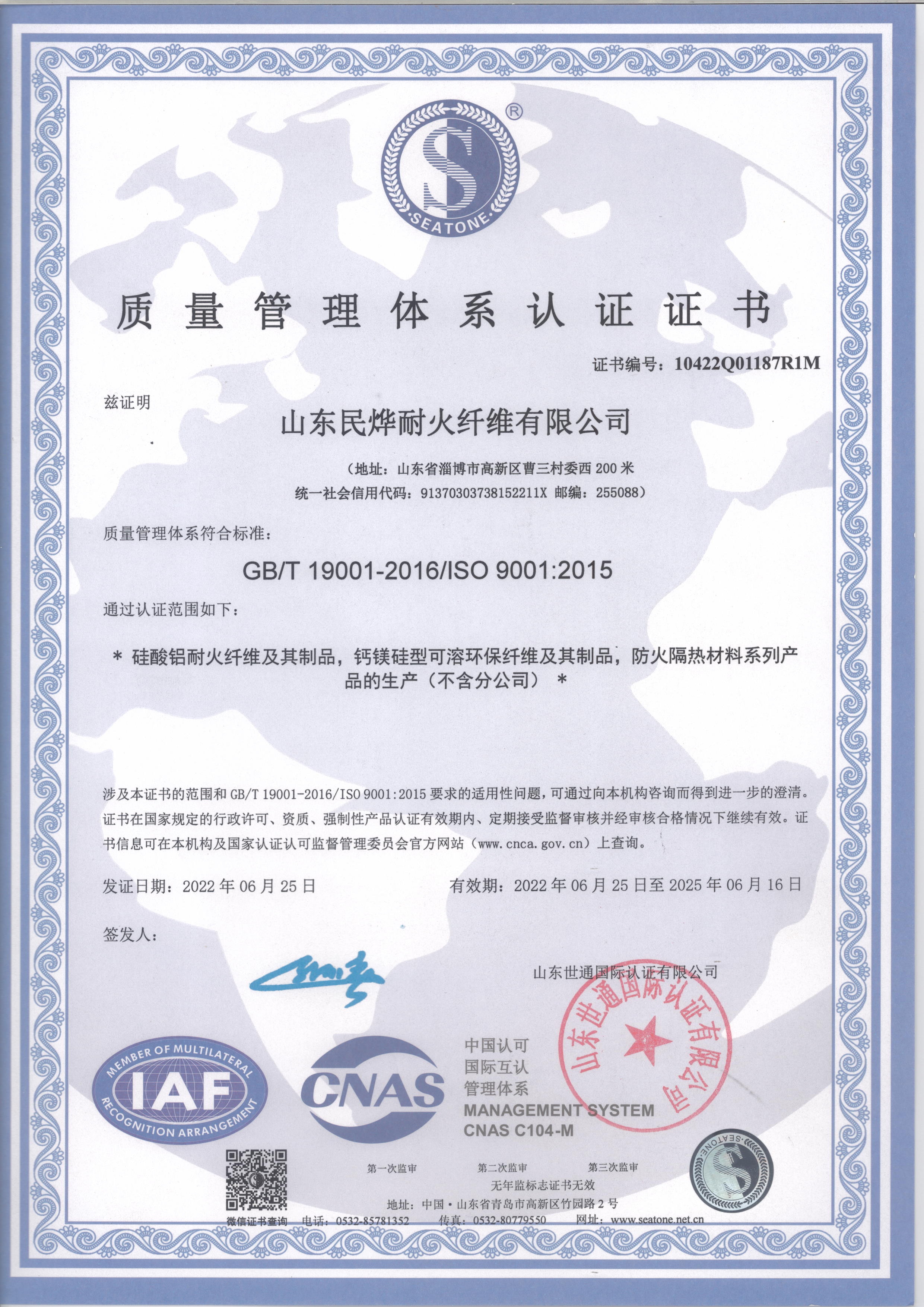 質量管理體系認證證書